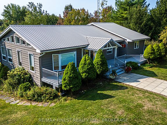Peaceful, tranquil, back to nature, seclusion-only a few of many descriptions this property brings to mind. With just over 187 acres, this home boasts serenity that is hard to find any more in this busy and chaotic world. You feel welcomed as soon as you open the doors to the large foyer just off the kitchen. The kitchen features warm wood cabinetry, wrap around island with breakfast bar and large patio doors facing both ponds located on the property at the back of the house. Lots of light enters into the large combined dining room and living room just off the kitchen, with another family room at the other end of the house with a large bay window for enjoying the scenic views. Upstairs there are 2 bedrooms, 3 baths and downstairs you can find 2 more bedrooms and a 2 pc bath along with a large rec room with wood burning fireplace or games room along with a walk out to the covered patio overlooking the ponds. There are many kilometers of trails cut to enjoy nature at its finest. There is so much to discover here, including a former gravel pit on the property or take a walk along one of the many trails and you may find an old log cabin in the woods! Most of the property is wooded, with both cedars as well as other hard and soft wood and when travelling the 0.3 km driveway, you will pass a stall style barn with hydro and its own well, for any animals you wish to bring. A third well is also located near the log cabin in the woods. A former owner cleared out an area with the intention of starting a small camp- ground and had the well and large holding tanks installed a few years ago. The new owner potentially could develop that area in the future if they so wish. (Buyer to do own due diligence with the Municipality of any work required, including rezoning provisions).Whether you are looking for a hobby farm, wooded getaway that has peace and quiet or a property where you can both live and play, this property certainly has it all!