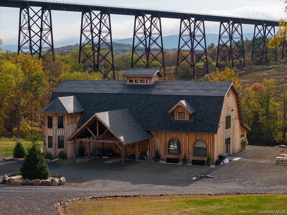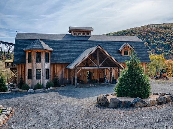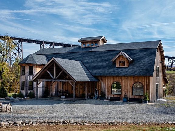 Stop searching, because you have just found your ideal home. Located in the coveted Orange County agricultural district, this 5-acre beauty (11.9 acres total) is the perfect blend of country, farm, and luxury. Rustic charm, natural wood, and unique architecture throughout really reflects the artistic creativity that went into this home. With views of Schunnemunk Mountain State Park, the infamous Moodna Viaduct/Metro North railroad and the newly constructed walking trails by Open Space Institute, this barndominium combines 6,400 sq ft. and a gorgeous barn cathedral space for family gatherings and/or recreation. Working farm with hops, rye, and a variety of flowers really brings the land to life. Enclosed side yard for pets or dogs, as well as small livestock like goats with pasture/paddock area. Wake up in the morning with a coffee and watch the mist and sun rise and listen to the sounds of wildlife. Whether you're looking to expand agricultural operations, add to your investment portfolio, start a homestead, or simply enjoy rural living with modern convenience, this avant-garde property is ready to bring your dream to life.
