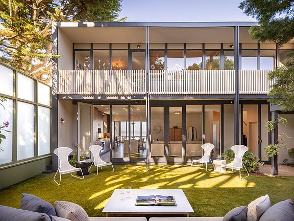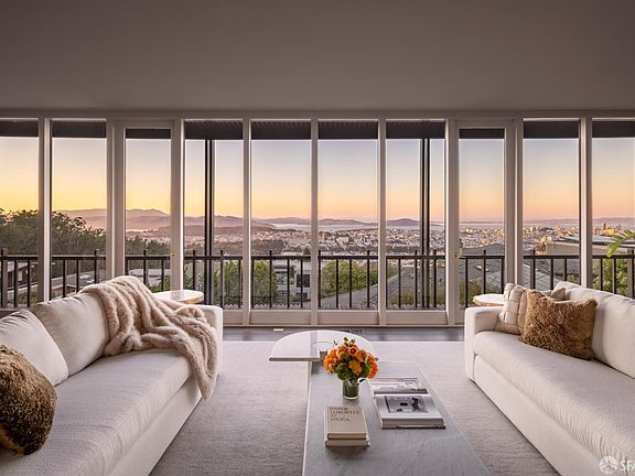 Designed in 1958 by Campbell & Wong Associates, 180 Palo Alto stands as an enduring example of Northern California mid-century modernism. The firm, celebrated for sculptural forms and an exceptional command of light, was closely aligned with the Case Study House movement that shaped American modern architecture from the 1940s to the 1960s. Their vision here is expressed in pure form: a striking glass facade, fluid interior spaces, and an effortless connection between home, garden, and view. Perched atop Twin Peaks, the residence captures sweeping views of San Francisco's skyline, the Golden Gate Bridge, and the Bay. A discreet entry gate leads to a terraced garden, where the house reveals its defining geometry. Inside, walls of glass flood the interiors with light, while four sets of French doors dissolve boundaries between indoors and out. The kitchen and family room are anchored by a marble-topped island and top-tier appliances, extending to dining and living areas with a balcony spanning the length of the home. The primary suite commands the panorama with private deck access, joined by two additional bedrooms and an office/bedroom. The lower level adds a family room, additional bedroom, office, and full bath. With layered terraces, an internal garden and a two-car garage.