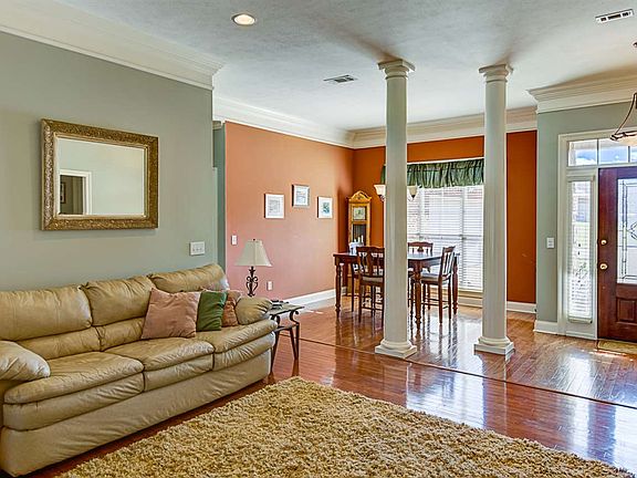 Beautiful well kept home in the Barrington Subdivision! This house has 1910 sq/ft, 3 bedrooms, 2 full baths, a formal dining room, breakfast area, split floor plan, spacious laundry room, covered patio, and a fenced in backyard! There is a beautiful glass front door and as you walk in there are hardwood floors throughout the living room, dining room, and hallways. The ceilings are 9+ tall in the living room and the window treatments throughout remain with the home. The master bedroom bathroom has double vanities, jetted garden tub, separate shower, and his and her own private closet. The backyard has a covered patio and a brick paver extension for more entertaining space. There is also a wooden fence surrounding the entire backyard! Call today for your private showing!