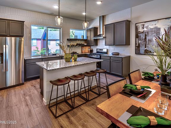 Luxury Townhomes Gated Community - Only a few units remaining! Enjoy living by the Truckee River within close proximity to all that Downtown Reno has to offer. Remaining units have been priced to MOVE and Builder is offering up to 25k in incentives, ask Agent for details. Beautifully appointed townhome with Flagstone cabinets throughout, quartz countertops and a beautiful backsplash. LVP flooring in all wet areas including entire main living level. 2 car plus large tandem Garage is finished with texture and paint. Townhome comes with a front fenced courtyard with ample room for your patio furniture and BBQ. Courtyard adjoins common pathway leading to the riverfront common lawn area. Convenient location just blocks from Idlewild Park, HUB coffee, Dorinda's Chocolates and upscale dining options. Oxbow Nature Preserve is just down the road. Low HOA fee covers exterior maintenance of the building, roof, common areas and front yard landscape. PICTURES are of model home not actual unit and reflect different finishes. Taxes will be assessed.