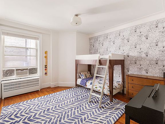 This pre-war building offers amenities such as 24/7 doormen, a children's playroom, a common laundry room, pets allowed with board approval, a gym, and a bike room (available for an additional cost). A deeded storage unit is included in the purchase. A 1% Flip Tax is payable by the Buyer.
