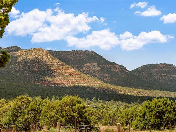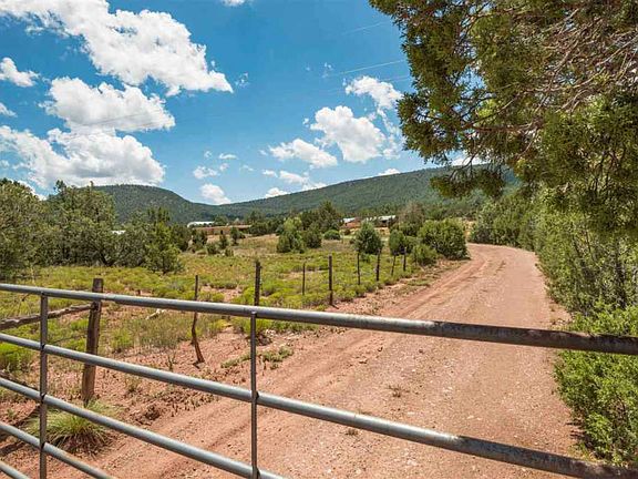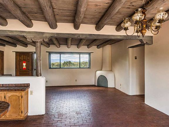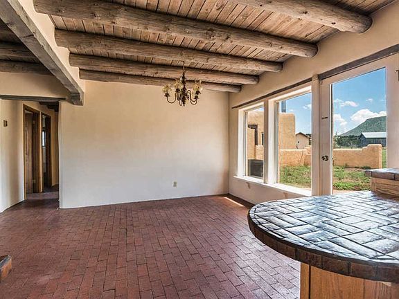 Profound mountain views from this horse property and true country estate in Rowe. 4.25 lush, fenced and cross-fenced acres. Main home features huge vigas, brick floors, 2 fireplaces, 2 wood stoves, and radiant heat. 2 carports, total of 5 spaces, helps shield the vehicles and store the hay bales. There are numerous outbuildings on the property including a Workshop/Studio, detached Office, Storage Sheds, Stable, and Pole Barn for the tractor. Fenced and piped turnouts and pastures, and coyote safe chicken coop. Easy paved road access to the driveway and a smooth & fast 30 minute commute to anywhere in Santa Fe. National Forest is 1 mile away from this versatile, "mini-ranch" property. $2500. stucco allowance for buyer at close. Lots of recent work done.