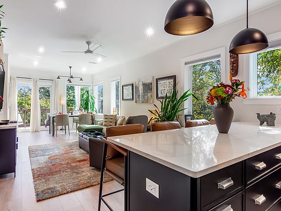 The home offers convenient parking with two dedicated off-street spaces and a garage. Outfitted with high-end appliances, the kitchen includes an LG microwave and gas range with ThinQ technology, a Bosch dishwasher, a KitchenAid refrigerator, and a Samsung washer and dryer. Security and accessibility are enhanced with Ring cameras and Schlage keyless entry, while a tankless water heater provides endless hot water to Kohler showers and baths. The Ecobee smart thermostats keep all living spaces perfectly comfortable year-round.