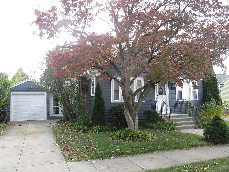 Introducing this charming and bright Bungalow style home in Elmhurst that has been lovingly maintained by the owner. This home offers 1940's character with a brick fireplace living room, a large eat-in kitchen that features vintage Vitrolite glass tile backsplash, bathroom with newer pedestal sink and gray & burgundy original tile work, lots of hardwood floors, 2 bedrooms on record, but 3 physical beds on main level, a deep 1 car garage with cement driveway and newer garage door, 3 season side porch with french doors, and there is potential to complete and update the lower level, knotty pine recreation room for more living space. This home has a splendidly landscaped yard that is surrounded by a living fence for privacy and terrific gardens and an underground sprinkler system. The heating system, hot water tank and roof are newer. This home is located close to Providence College and LaSalle. Truly a gem!