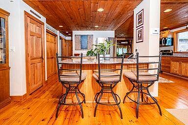 - Features: Beamed Ceilings, Breakfast Nook, Kitchen Island, Pantry, Recessed Lighting