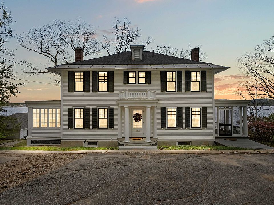 Rare Sewall Road offering. Welcome to "Wiscasset", a sprawling lake front property in America's Older Summer Resort town, Wolfeboro, NH. Your legacy begins here in one of the area’s most sought after locations on the lake. This stately Colonial includes a deep water boathouse, guest house, bunk house, barn and garage. The pristine waterfront is a magical setting for year round indulgences and includes 188 feet of shoreline on a 1.57 acre lot that overlooks iconic view of downtown Wolfeboro, Brewster Campus and the Mountains in the distance. The interior of the home features warm and inviting colors, generous wood features, polished cherry floors throughout and high ceilings. The large floor to ceiling windows blur the lines between indoors and out, creating a sense of history in the spaces that overlook the lake. With town water and sewer, this lot is suitable for a number of future development opportunities. Located within walking distance to downtown and the Sewall Woods Conservation area. Seller can provide NH Shoreland permitting recently approved as well as building plans are in place for those seeking to rebuild. Build new or use just the way it is. Walk to town!