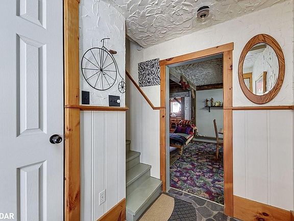 Character-filled 4 bedroom home in Oro-Medonte. Private water access only a short walk away. Extensive armor stone along the front. Cozy great room with hand hewn beams and gas fireplace. Recently renovated kitchen with stainless steel appliances. Main floor office. Large primary bedroom with wood fireplace and walk out to deck. Pee-a-boo lake views. Upstairs also features family room with walk out to deck and 3 more bedrooms. Separate studio in the back yard with a wood stove and hydro. Listen to the birds sing off the deck of this unique country chalet.