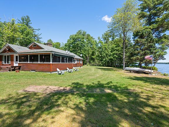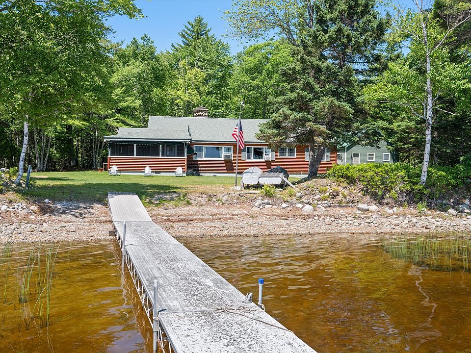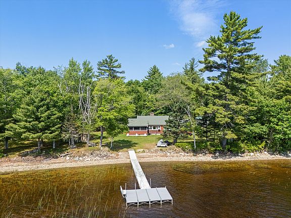 Privately sited on over five acres with 670' of lake frontage and 425' of stream frontage for a total of 1025' of lake and stream frontage on Big Lake in the Grand Lake Stream Region. A meticulously cared for cottage with an amazing L-shaped lakefront porch, 4 bedrooms, 3 baths, lakefront living room with stone wood burning fireplace. The cottage had an addition added in 2003, plus a garage in 2004 that is 24'x24' with a standing seam metal roof. An exterior fieldstone fireplace that is a work of art allowing evening fires, making smores, etc. The property whispers character and quality offering all amenities of today. It consists of two lots with the cottage and garage being on one of the lots. Amazing conservation lands in the Grand Lake Stream Region preserved by the Downeast Lakes Land Trust with recreational trail access from the property. Breathtaking views with islands create the landscape. Experience nature's unfolding story, a place that beckons you back to the forest, the lake, family, and friends. It will rekindle your spirit and soothe your soul, a haven from the outside world.