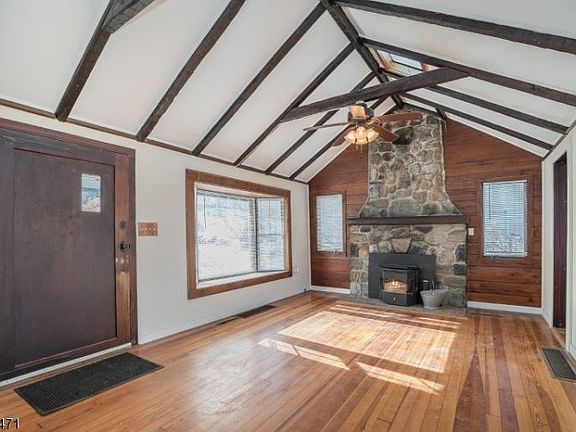 Looking for the perfect escape? Make this charming Lake Mohawk custom home your summer getaway, your weekend retreat, your first home or your forever home! A rare find, this home features single level living (w a basement) and an on-grade garage! Cathedral beamed ceilings throughout, coupled with original wood floors, pecky cypress wood walls + cabinets and a super cozy floor to ceiling stone fireplace (currently configured w pellet stove) are the essential ingredients to the quintessential early Lake Mohawk home...And this one has them all! Finished basement (den) + dry storage laundry utility area is a great bonus! Central Air, New Roof, Fresh asphalt driveway, newly surfaced deck, fresh paint inside AND out! Terraced yard is both functional and easy to maintain!
