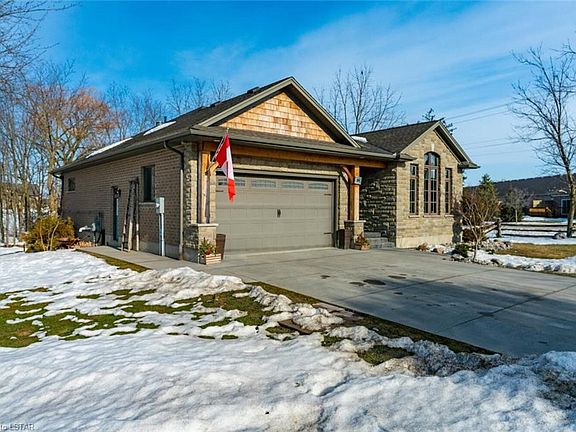 Welcome to 180 Stanley Street in Lucan. This beautiful bungalow offers 5 bedrooms, 2 full baths and sits on 0.398 acres backing on to the creek with beautiful mature trees. Enjoy your backyard oasis and entertainment area complete with a hot tub, pool and bar area. Enjoy brightness with sunlight from the east and west throughout. Beautiful hardwood floors cover your entire main floor living space with ceramic tile in the bathroom and mudroom. Your open concept living, kitchen and dining area are complete with 9 ft / cathedral ceilings and a gas fireplace that is the perfect space to cook, relax, dine and entertain. Enjoy custom feature walls with rustic charm throughout. In the lower level, walk on polished, heated floors toward the activity room / rec room. Beyond this, a perfect office or craft room awaits. Other features include: Owned hot water heater, stamped concrete driveway, large kitchen island, gas stove, and much more. New living room blinds and freshly painted. Enjoy being part of a great community. Just a short walk or drive to the arena / community centre, shopping, banking, and restaurants. 20 minutes to London, 25 minutes to the beaches in Grand Bend, and an easy commute to the GTA.
