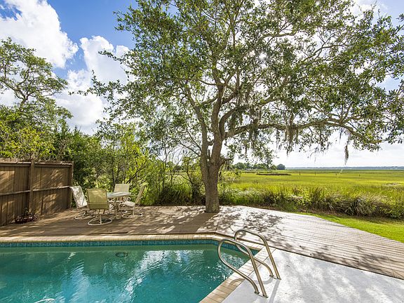 This gorgeous traditional, marsh-front island home is situated on the best lot in the gated Sunrise Pointe Subdivision. The 180-degree panoramic easterly views of the marsh, river and Sea Island will take your breath away. There are two large decks and a marsh-front pool and patio to take advantage of the views. This was the builder's personal home and includes a large open kitchen, a great room with a vaulted ceiling, gas fireplace, heart of pine wood floors, concrete countertops, elevator shaft and large windows to take advantage of the views. There is an additional 975 square feet (approx.) on the first level, with an extra bedroom, exercise room, storage room, office area and another full bath. You get a million-dollar view, without the million-dollar plus price!
