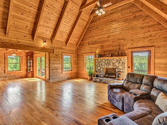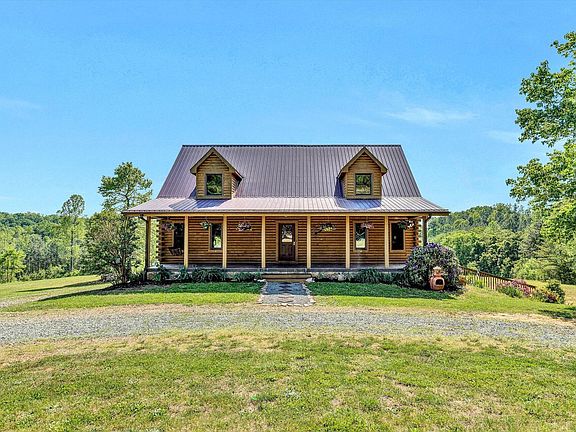 Log Home with 17+ acres! Enjoy privacy on multiple parcels totaling over 17 un-zoned acres in the foothills of Virginia's Blue Ridge. Room to play, have your homestead or hobby farm. Custom Log home features a metal roof, open floor plan, cathedral ceiling with exposed beams, and stone fireplace for gas logs or wood burning. One-level living with master suite, great room, kitchen with walk-in pantry, office/hobby room and laundry on the main floor. Room for family and guests upstairs & full walkout basement with tons of storage space. Well maintained, just re-stained & caulked in 2022.
