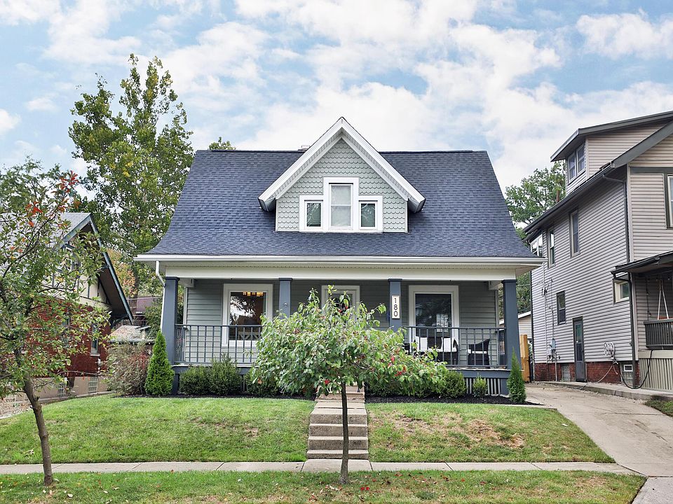 Built in 1921, this Clintonville charmer combines timeless details with thoughtful upgrades! Original trim, wood frames, the windows, doors and baseboards throughout the home preserving its historical appeal The kitchen has been fully renovated with quartz countertops, recessed lighting and new flooring while upstairs features restored original hardwood flooring and new carpet in one the three bedrooms! The bathroom includes fresh tile, a new vanity, and updated cabinetry, and new light fixtures have been added throughout the home for a modern, cohesive look! The spacious backyard is a highlight, complete with a brand-new privacy fence and built-in lighting, creating an inviting space for play or entertaining! A newly built private office offers flexibility as a work space, studio or a home gym! Every room has been thoughtfully improved to enhance both beauty and functions. concrete driveway allows parking for 3 +.