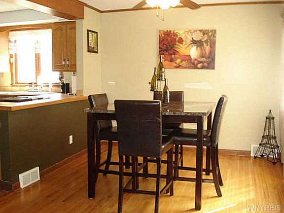 So many updates thruout this wonderful 3 bdrm brick Cape. Beautiful open kitchen w/so many cupboards, recessed lighting, bltin desk, dishwasher, Jennaire range & ceramic countertops. Large eating area w/crown mldg & hrdwd flring. Foyer w/French drs to LR w/crown mldg. Bath is fully updated, 2 bdrms down & large bdrm up w/walk in closet & expandable area of unfinished attic space. Fully fenced yard w/17x32 inground pool & covered patio - pool is separately fenced.Full bsmt w/glass block windows, 2 car garage, 150 amp elec. C/A. Updates: cement around pool,fence, driveway apron '13, Roof '11.