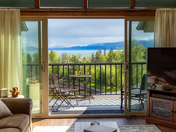 Enjoy morning coffee or evening wine on your private balcony overlooking Flathead Lake and the Marina Cay docks. Guests also have access to the complex's outdoor hot tub and large yard along the shoreline