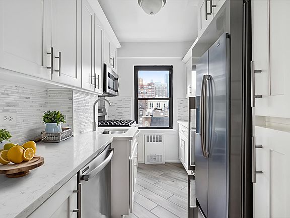 This renovated one-bedroom (or convertible two-bedroom) home features a spacious living and dining area, along with a beautifully updated kitchen complete with stainless steel appliances, including a dishwasher. The generous king-sized bedroom enjoys double exposure, and the bathroom has been tastefully updated as well.