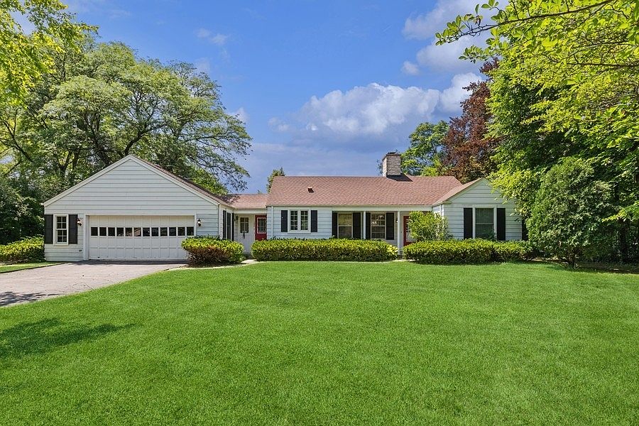 An incredible opportunity to live in, rehab, or build new on this private 1-acre lot in the sought-after Northfield school district. This charming ranch is drenched in sunlight with loads of windows and French doors overlooking the perfectly proportioned and symmetrical yard with a natural fence of lush trees on the perimeter. Designed for today's living, the open floor plan includes a formal living room with wood burning fireplace, a handsome dining room, and the show stopper of the house - a stunning great room with a vaulted ceiling and fireplace. The eat-in kitchen, mudroom, and powder room are conveniently located off the attached 2-car garage. The luxe primary suite includes a fireplace, spa-like bath, and a spacious, oversized walk-in closet with custom built-in cabinetry. Tucked away are 2 additional bedrooms which share a handsome hall bath. The 4th bedroom/office is located off the great room and includes custom closets, bookcases and allows for privacy from the main living spaces. The attached sunroom brings the "outside in" and leads to the covered brick patio with stunning views of this private oasis.