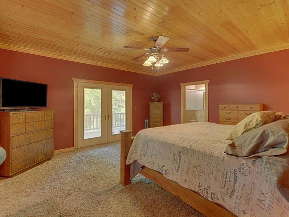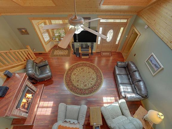 A Custom Mountain Charmer! This beautiful home greets you with a huge wrap around porch & gorgeous mahogany front door. Step inside to tigerwood floors, two story iivingroom, master on main with a great walk in closet. The kitchen boasts granite counter tops, stainless steel appliance, 64" fridge/freezer, & custom cabinets. The laundry room is off of the kitchen that leads out to the screen porch. There are two bedrooms & a bathroom upstairs. The unfinished basement is ready for you to make it your own. So many building upgrades in this home. Outside decks & Soffits are all tongue & groove, 3" railings with 8" inside & outside, & both full bathrooms have 36" height counters just to name a few. This home will not disappoint.