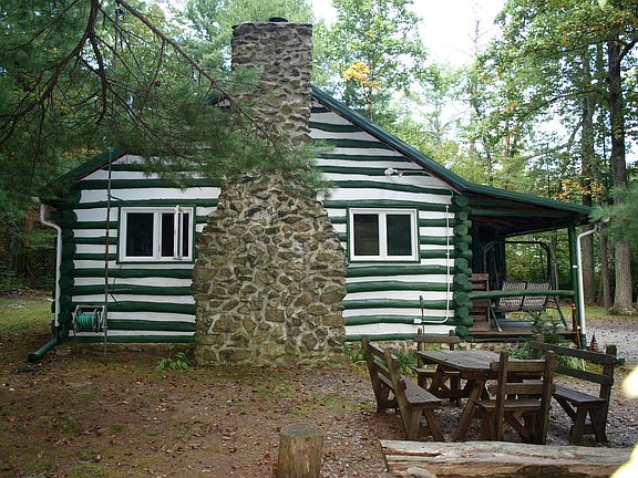 Relax to the tranquil sound of an adjacent mountain stream as you relax on the porch of this furnished rustic log cabin nestled in the embrace of the Michaux State Forest. Large dining table provides plenty of space to start the morning with a freshly brewed coffee and a hearty breakfast prepared in the kitchen accented by corner Franklin stove. Stone fireplace with wood stove insert compliments propane heat while overhead ceiling fans circulate the mountain air. Enjoy a hot shower with water provided by the on-site well after an evening campfire Bunk beds featured in one of the three bedrooms, while loft with television and phone access provides sleeping quarters for additional seven guests. Hunting and hiking access enhance amenities for individual or hunting/outdoor group use. PA residents. Land lease $200/yr.