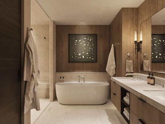 Walk-out ski slope patio residence with easy access to skiing and hiking trails. Large operable window walls and infinity great room. Flex room allows owners to personalize use, whether office, bedroom, or media room. Spacious entertaining kitchen showcases Wolf appliances and large kitchen island. Private, direct elevator access via a gracious residence entry. Luxurious primary bedroom with walk-in closet and spa-inspired bathroom. Ensuite guest rooms.