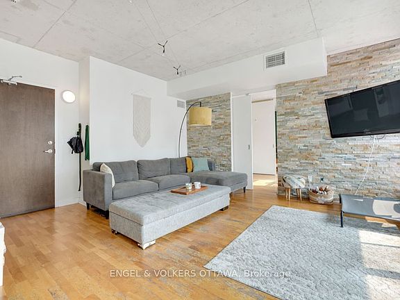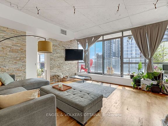 This well-appointed 1-bedroom + den residence is located in an established & well-run condo building situated in the heart of Ottawa. This unit sits on the 11th floor, high above Lower Town allowing for beautiful views of central Ottawa. Enter the inviting unit revealing approximately 853sqft of comfortable open-concept living space. The living room with stone-feature wall showcases 9ft high ceilings & a wall of windows that span the entirety of the unit, flooding the home with warmth & natural light. A chef's kitchen features updated quartz countertops, extensive cabinetry & breakfast bar. An office/den is adjacent to the private primary suite with a 4-piece ensuite & walk-in closet. Designed for comfortable living, the unit features a spacious L-shaped balcony, ideal for entertaining & relaxing. Indulge in the finest urban lifestyle steps to the lively ByWard Market, Parliament Hill, uOttawa & downtown. The lifestyle leveraged by this location will be enjoyed for years.