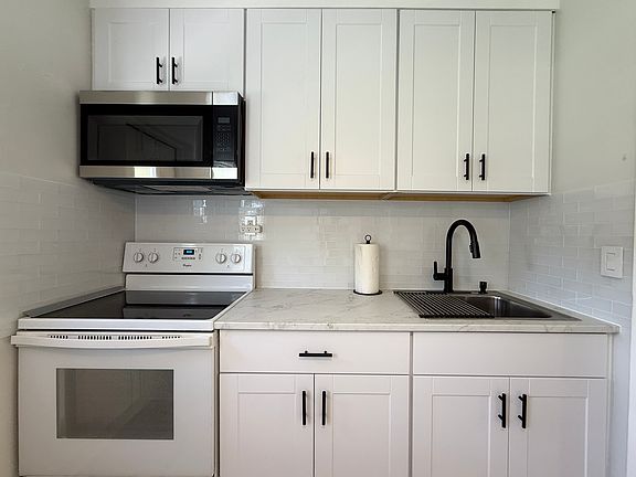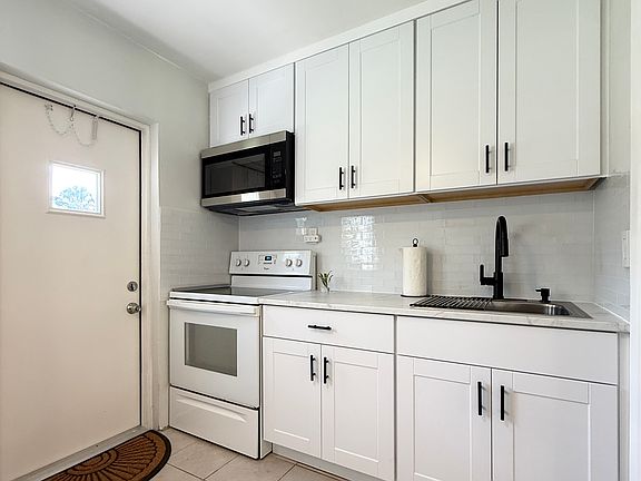 Step inside to discover stunning newly refinished terrazzo flooring throughout and a brand-new kitchen with sleek shaker-style white cabinetry, modern countertops, breakfast, butcher block bar, newer appliances, brand-new stainless steel microwave, and tons of storage throughout- perfect for anyone who loves to cook or entertain. Brand new modern black fans with remote controls and a bright, open layout flow effortlessly, creating a warm and inviting space to relax or host guests. The large front room offers ample space to set up a cozy home office.
