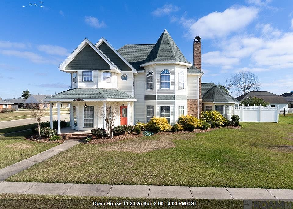 Victorian charm meets modern comfort in this custom-built beauty located in a highly sought-after subdivision. This 3-bedroom, 3-bath home combines timeless elegance with practical design, featuring crown molding throughout, a spacious primary bedroom with a striking 25-30’ turret, and a study/office with built-in bookcases. Cozy details like an upstairs window seat and functional spaces such as the great room, kitchen, and laundry room add to the home's appeal. Outdoor living is a delight with a wraparound veranda, a back porch accessible through double French doors, ceiling fans for year-round comfort, and a large yard with an in-ground pool perfect for entertaining or relaxation. The vinyl siding and brick exterior ensure low maintenance, and the attached 2-car carport with a garage door, along with a shed featuring its own garage door, provides ample storage. An adjacent lot is also available for purchase, offering endless possibilities for expansion. Don’t miss this rare opportunity—schedule your private tour today! With a full price offer the seller will allow $20,000 to go toward, Renovations, Interest Rate buy down or closing cost at the act of sale.
