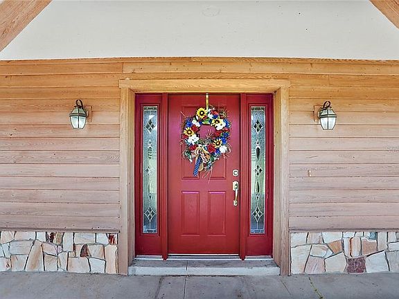 Live your best life with all the amenities of Florida fun and relaxation found in this incredible homestead! Centrally located in the heart of the sunshine state, this custom designed, 2116 sq ft home has it all: 4 Bedrooms -40ft Pool-30 x 52 Barn-on 4.88 acres. Cedar pillars with custom stone bases stand high under the roof-over front porch embellishing the home-front. Cathedral ceilings throughout living area. Bluetooth custom sound system throughout home with individual room control. Beautiful wood flooring throughout Living Rm/Dining Rm/Bedrooms. The kitchen: thick gorgeous tile with shimmering colors of copper and shades of cream casts a luster to the beauty of the 18 x 14 chefs kitchen... Custom wood cabinets with lazy-suzann racks & easy close drawers, Kitchen Island (veg wash sink & electric outlet) and large food pantry, cathedral ceiling with double sky-lites, can lights, and sound system speakers. The BOSCH oven is separately encased from the Kenmore PRO 5-burner gas stove top. Spacious laundry room: space for washer, dryer, & chest freezer; also has long installed retractable folding shelve, custom wood cabinets, & utility sink. Master Bedroom: cathedral ceiling/silent lighted fan/walk in closet. Master Bath: tiled and has pocket sliding door; tiled shower with frameless glass front door, sitting area, high frosted window. Garden jacuzzi tub encased in custom cut tile. The toilet area tiled and separated by a sliding pocket door. Master bath closet has a secure key pad and key access accessory on the closet door. The Pool: Double french doors lead to the pool lanai and 40 ft pool: decorative tile; new pool pump, pool heating system, weather resistant sound system, and fixtures to add a slide. Jacuzzi pool. Custom built pool enclosure: screen/aluminum, two door, with vaulted top. Irrigation for shrubbery surrounds the outer perimeter of the enclosure. The Awesome Barn: The steel enclosed 30 x 52 barn has 4 high industrial sized roll up doors (1 oversized to drive an RV through), 1 standard entrance door; outside motion security lights, two outer water faucets, outer electrical outlet and outer concrete pad. Inside plumbed for indoor water and facility; has loft rafters, lighting, silent over sized ceiling fan, 2 vintage lighted ceiling fans, electrical outlets, high shelving & thick concrete floor. The barn brandishes a new custom built wood 14ft bar with under shelf and vintage chandelier. The barn is on separate power meter than the home. The front acreage is under ground irrigation. The entire property is fenced/cross fenced. Hardware is in place on the perimeter fences for electrical fence installation. There are large healthy farm-raised planted oaks and laurel oaks along 3 sides on the property along with magnolia trees, crepe myrtles, a producing Spanish plum tree, a peach tree, and flowering pink hibiscus. Home's water is solar- saving on electric bill. The A/C return is new. Private well has filtering system. The location and neighborhood is peaceful and well maintained. This home is by no exaggeration, a resort-of-a-home, with all of the amenities to relax and enjoy the good times, and a good life!