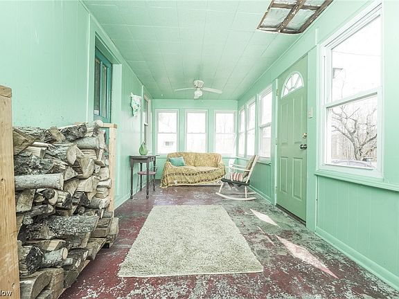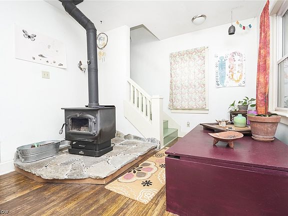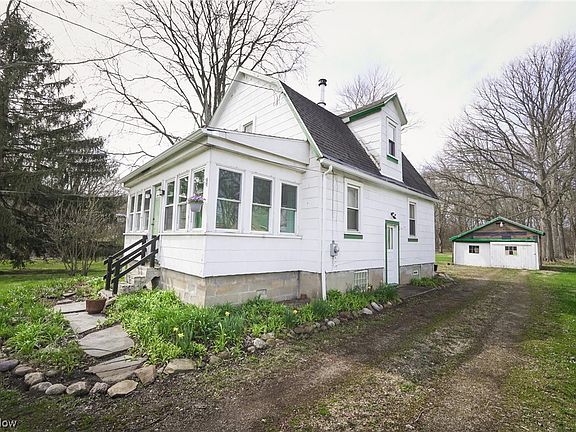 Charming 2 bedroom, 1 bath home situated on over an acre of land. As you enter through the covered porch, you will love the bright, spacious layout with beautiful hardwood floors throughout. The living room features a wood-burning stove, and the seller has plenty of wood to leave behind for the next owner. Heading into the dining room, you'll see plenty of natural light coming in from the windows along with custom built ins. The rustic kitchen offers ample space and a door to the backyard. Upstairs you'll find a full bathroom including a clawfoot tub along with 2 nicely sized bedrooms. Full basement, including a cold cellar, for additional storage as well as a detached, single car garage. Outside features include established fenced-in garden areas, a fire pit and colorful flower gardens surrounding the home. This is truly a unique property in Akron with so much to offer. Come and take a look!