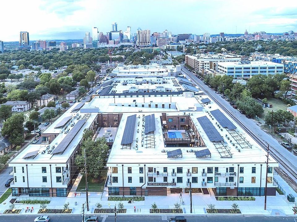 FOURTH& is located in a central spot in East Austin's thriving growth and offers studios through 2 br units. amenities include: property management, solar panels, guest suites, lounge pool, club room, conference room, dog wash station & more. the structure is constructed with concrete & pre-insulated recycled steel. Our two bedrooms are spacious and have extra space to get creative with. Units feature high ceilings, large commercial glass, gas range etc