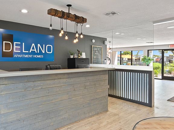 Welcome Home to your personal oasis at Delano Apartments, where an elegant driveway lined with palm trees reveals stunning Spanish-style architecture and sprawling green spaces. When you rent your next home in this community, you will enjoy picturesque views and access to the best hiking and biking trails in Mesa. Our spacious floor plans are designed to provide plenty of room for relaxation. We welcome to tour our resort-style community today.