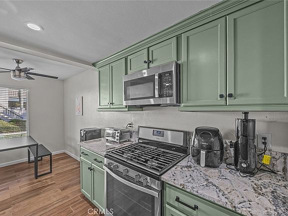 Welcome to this BEAUTIFUL 2-Bedroom, 2-Bath lower-level Condo offering style, comfort, and convenience in a desirable gated community. Enjoy a bright, open-concept layout featuring modern finishes and timeless appeal. The kitchen stands out with light sage green cabinets, quartz countertops, stainless steel appliances, and farmhouse-inspired accents. Both bathrooms include tasteful designer details with tiled showers, granite countertops, and updated vanities. Additional features include laminate wood flooring, recessed lighting, ceiling fans, wood shutters, and fresh neutral paint throughout plus inside laundry. Relax or entertain in your private patio yard, a rare find that adds extra outdoor living space. This move-in-ready home also includes an assigned parking space and access to community amenities. Ideally located just minutes from Loma Linda Hospital, shopping, dining, and major freeways. Don’t miss the chance to make this beautiful condo your new home!