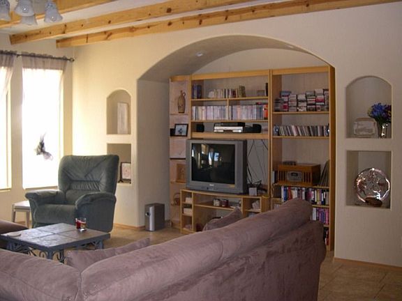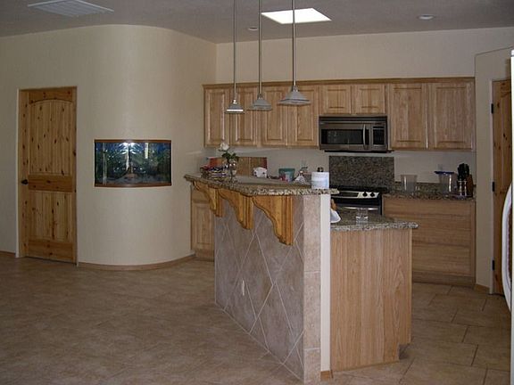 Located on a large .8 acre lot view lot, this lovely home has a bright open floorplan. Large greatroom has beamed ceiling, nichos & two-way heat & glow fireplace. Country kitchen w/stainless appliances, breakfast bar/island & pantry. Spacious master bedroom has walkin closet & bath w/two sinks, jetted tub & separate shower. Home has glass block accents in baths & master closet, granite countertops & knotty pine doors throughout. Fabulous mountain views. Adjacent 1 acre lot for sale MLS#702801