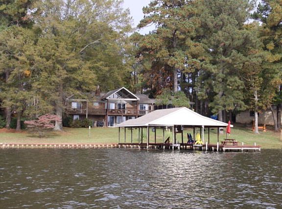 LOCATION, LOCATION, LOCATION! This lake home is situated on a main lake peninsula w/ over 200' of bulkheaded shoreline w/ clear deep water, stunning sunrises, & wide cove to main lake views. Tucked back just slightly giving you perfect water for swimming, fishing, & more. This low maintenance home has a brick exterior, paved drive, 2 car garage, dbl boathouse w/ covered area, lower level rec room, spacious waterside master, large bedrooms, 3 full baths, hardwood floors, 2 fireplaces, tankless hot water heater, generator, screened porch, expansive waterside deck that is partially covered for full enjoyment of the amazing water views here. This lake home w/ it's gently sloping yard & over 200' of GOOD waterfront & located in a well established golf course community w/ many full time residents only 15 minutes to I-95 make it a must see! Furnishings are negotiable! Strong rental history