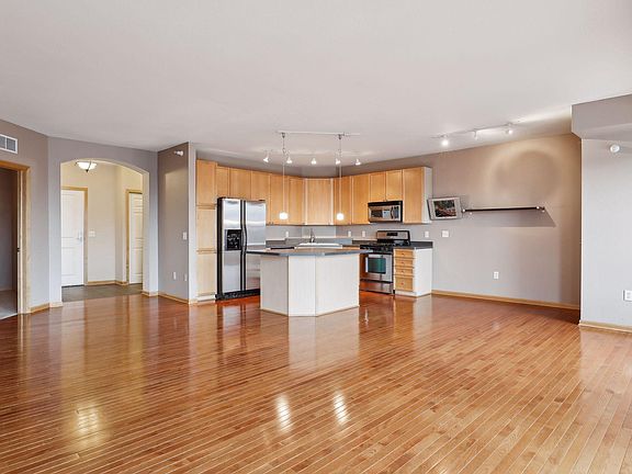 Welcome home to this beautiful condo with wonderful southern exposure overlooking a spacious deck on the third floor! Real hardwood flooring covers the large open-concept kitchen, living, and dining spaces. Two full bathrooms including a primary bathroom with tile, and separate shower and tub past a giant primary bedroom and walk-in closet. Stainless appliances, a large kitchen island, modern light fixtures, and tons of natural light. Spectacular common spaces including a beautiful community room with a bar and billiards table as well as an exercise room, outdoor patio, and loft including a game space and library. This building is also extremely secure, both at the front door entrance as well as the garage door leading to the heated underground garage. This property is in a great location! Multiple dining options as well as the Mississippi River only a few blocks away and super easy access to MSP airport. Schedule your showing today and come check out this gem of a condo!