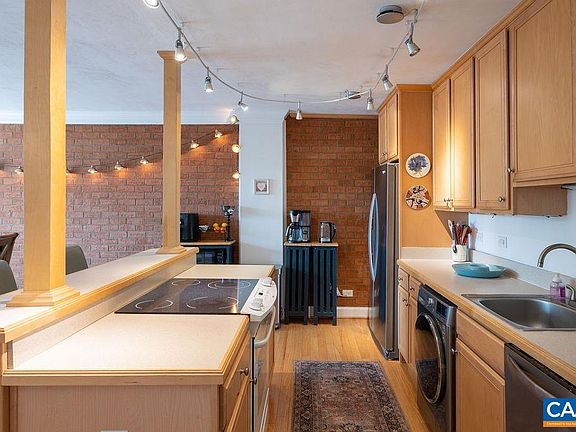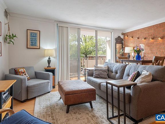 Don't miss this rare 2 bedroom unit with 2 full baths at 1800 JPA! Nicely renovated with open floor plan, hardwood floors, brick accent wall, new LED lighting, new HVAC (2022), new all-in-one European style washer/dryer (2020), new dishwasher (2020), new refrigerator (2024), new toilet in primary bath (2024). Enjoy relaxing on the balcony in the sunshine or go for a swim in the community pool. Walk to UVA grounds, UVA Hospital, UVA Ed School, Scott Stadium. Ride the UVA bus all over grounds, the free Trolley to the Downtown Mall, or the city bus all over town. Or bring your car -- there's plenty of parking in the condo parking lot.