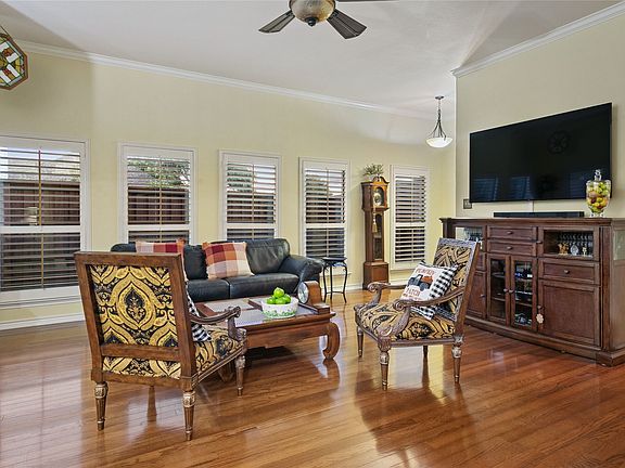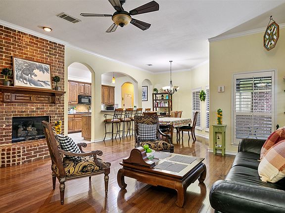 HOLD ON TO YOUR HATS!!! This delightful 2007 cottage truly has it all! Step inside through a warm, inviting entry hall that leads gracefully into a generous living area. The open space showcases gleaming wood floors and abundant natural light streaming through wide windows, creating a bright, cheerful atmosphere. At the heart of the room stands a striking floor-to-ceiling brick fireplace with a charming hearth — the perfect spot to sip cocoa straight from the nearby kitchen. The open layout keeps you connected, whether entertaining or relaxing at home. On one side of the home, you’ll find two secondary bedrooms sharing a full bath. Each room is versatile and comfortable — ideal for guests, a home office, or a creative studio. Across the floor plan, your private primary suite awaits. Spacious and tranquil, it offers a serene retreat with an ensuite bath designed for everyday comfort and ease. Then—holy cow!—you step into the primary closet and discover true luxury for this price range: roomy, organized, and absolutely impressive. The utility room, conveniently located off the kitchen, provides space for laundry and storage, while the attached two-car garage keeps life practical and tidy. Out back, enjoy a completely low-maintenance yard with a hard-surface patio extending to the wide driveway — perfect for gatherings or quiet evenings outdoors. Somewhere there’s a house with nothing… because this one has everything!