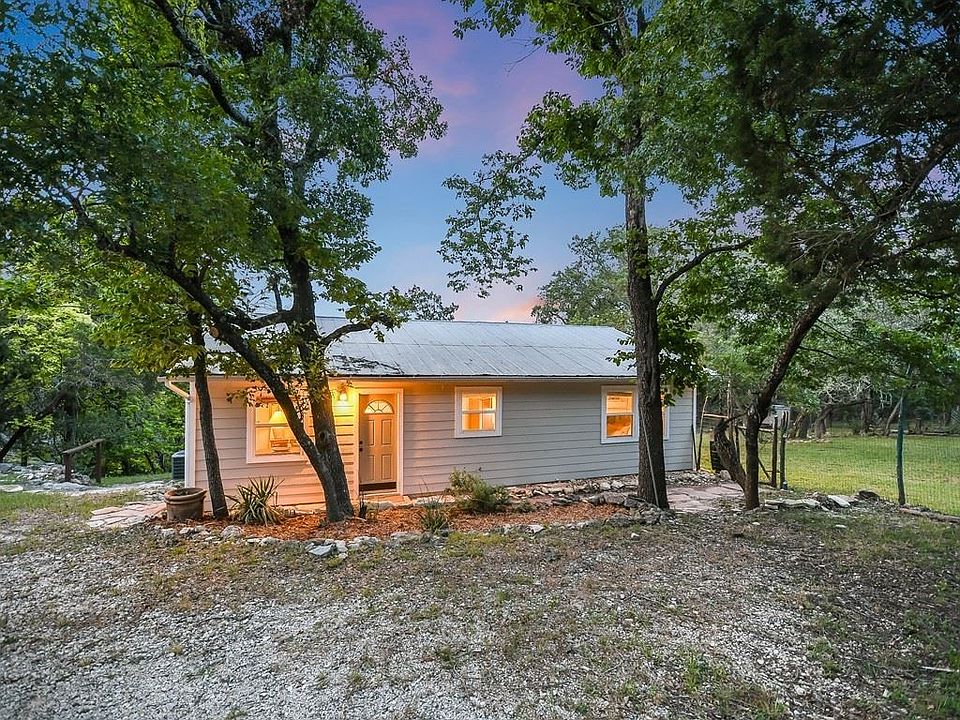 Texas Hill Country "Dream Come TRUE Retreat" nested perfectly on an idyllic 3.5+ acres surrounded by sprawling oaks, breathtaking views, and uninterrupted rolling hills. Meticulously maintained and showcasing modern updating, recent siding, recent HVAC system, enclosed back porch, updated dual pane windows, lighting, tile/hard flooring(no carpet) and massive outdoor living spaces. Lock and leave lifestyle with abundant parking perfect for entertaining or simply enjoying a Texas sunset weekend.All this plus low, low taxes, very few restrictions, ready for gardening and heck yeah!...raise those chickens. Several outbuildings plus plenty of space for developing and/or building a second home. A private paradise retreat yet a stones throw from Wimberley's adorable downtown, known for its vibrant art scene, unique shopping, and delightful dining. Unrivaled tranquility and rustic charm. Truly a rare gem.