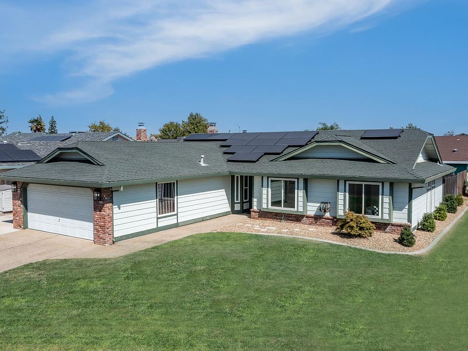 Nestled on a corner lot in a desirable Lincoln neighborhood, this single-story home welcomes you with sun-filled spaces and room to gather with family and friends. The open-concept living area features a vaulted ceiling, picture window looking out to the private backyard and cozy wood-burning fireplace. Tile flooring throughout unifies the rooms and makes for easy upkeep. The kitchen offers stainless steel appliances, breakfast bar, dining nook, ample storage, work space plus walk-in pantry. Sliding doors in the living area open to a large covered patio with lighted fans, perfect for dining and entertaining. The primary suite includes a remodeled bath with dual vanities, granite counter, soaking tub and walk-in shower. The separate laundry room and hall storage add functionality. Fresh interior paint, new baseboards, updated door hardware add a modern touch. All this plus: solar panels with back-up battery (to be owned at close of escrow), Fiberoptic internet installed, tankless water heater and a fenced concrete side-yard perfect for RV/boat/trailer/ATV parking or more. The extra-wide front driveway offers additional off-street parking. Conveniently located near K-12 public schools, Joiner Park, shopping, local eateries and historic downtown. NO HOA or MELLO ROOS.