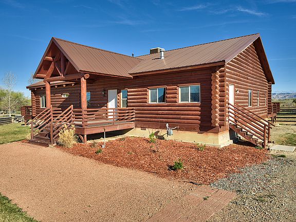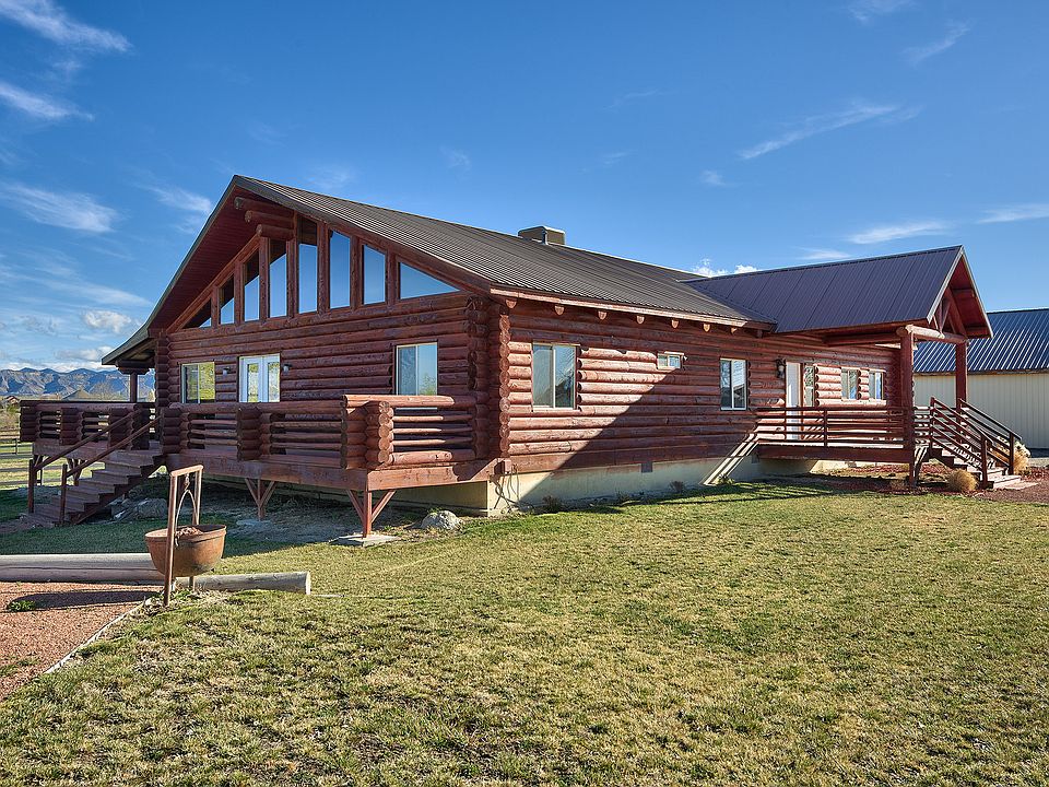 Situated in the northern area of Fruita, just a few short minutes to the Bookcliffs and northern desert areas full of outdoor adventures. This handmade log cabin boasts amazing western Colorado views with just enough acreage for a hobby farm. From the oversized great room to the commercial grade kitchen, sunlight and nature’s beauty bask the wood floors, granite counter tops, high-end appliances, Saltillo tile and much more. The kitchen compliments the oversized great room with a rustic design and wide open space. The master bedroom has a large 5-piece master bathroom with a great amount of counter space around the double sinks. Two additional bedrooms, and a main bathroom, plus a large mud/laundry room complete this ranch style floor plan. A large wrap around deck provides plenty of entertainment room for those outside barbeques and activities. If you desire private space, a quiet and tucked away residence yet minutes from downtown Fruita – a top rated bike and outdoor adventure town, you don’t want to miss this house. The location is covenant free, surrounded by 6.28 acres of scenic wide-open space, with about 4 acres of well irrigated pasture land, an insulated shop and garage, MD horse barn, arena with tie pole, multiple animal pens and a fence layout ready to indulge your desire for country living and livestock owning. Additional items to note at this residence include R44 insulation, Breezair evaporating cooler and a long lasting metal roof.