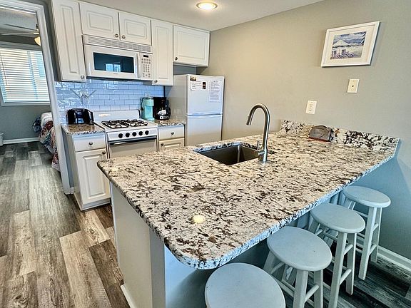The Surf Song. One of the Most Sought after condo associations on the island. This is a Year Round Condo complex that does not fall under the North Wildwood Condotel Ordinance. Feel Free to Live here all year if you would like. Welcome to Unit 318. This is a beautifully updated and upgraded 530 Sq feet unit (According to tax record). There is so much to love about this home and complex. There are multiple elevators (Perfect for those that have difficulty with stairs and for bringing up clothes and groceries), multiple pools, hot tub and sun decks. There is also an area for chillin and grillin. Unit 318 has low maintenance Luxury vinyl flooring, Granite Countertops and center island, Updated Bathroom fixtures and open floor plan. These properties rent for approx. $2100 per week during peak times. You may rent on your own or utilize an inhouse rental program that charges 25%. Condo fees include Master Flood and Liability insurances, electric, Water, Sewer, and Exterior Maintenance including pools, Elevators, Systems etc... Cable and Internet can be paid for as well for $150/year through association