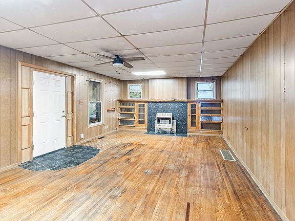 Unfinished basementConvenient half bathAdditional storageDetached carportDetached storage buildingCovered front porchHardwood floors