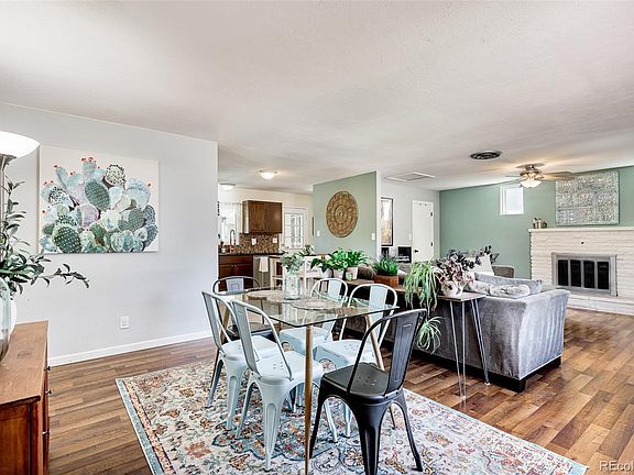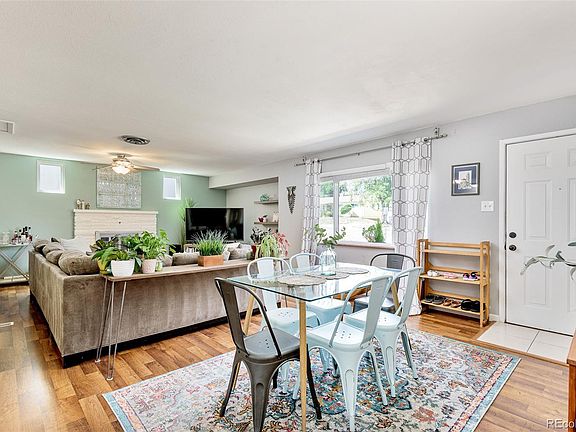 Live well in this four bedroom, two bath single-family two blocks from Harvey Park located in the Marlee neighborhood. Great corner lot near to Sanderson Gulch Trail greenway with front loading driveway off of Tennyson St and opportunity to pull in an RV or to build a new garage on Colorado Ave. Inside you’ll find cohesive laminate flooring throughout this one level home with no stairs. There’s an enormous living area with a large window and fireplace perfect for entertaining next to an open kitchen. The kitchen has a window overlooking the backyard, upgraded appliances, and an island with seating. Near the back door there is a half bath, pantry storage, and a stackable washer and dryer. A full bathroom and four bedrooms are clustered together on the north side of the house. Two of the bedrooms are large enough to accommodate king size beds. There is a spacious backyard with a covered back porch and two sheds for additional storage. The furnace and water heater are located in the crawlspace; access is on the northeast side of the house in the backyard. The roof was replaced in 2015, new AC was installed in 2018, and it also has a newer electrical panel. This home qualifies for the community reinvestment act providing 1.75% of the loan amount as a credit towards buyer’s closing costs, pre-paids and discount points.