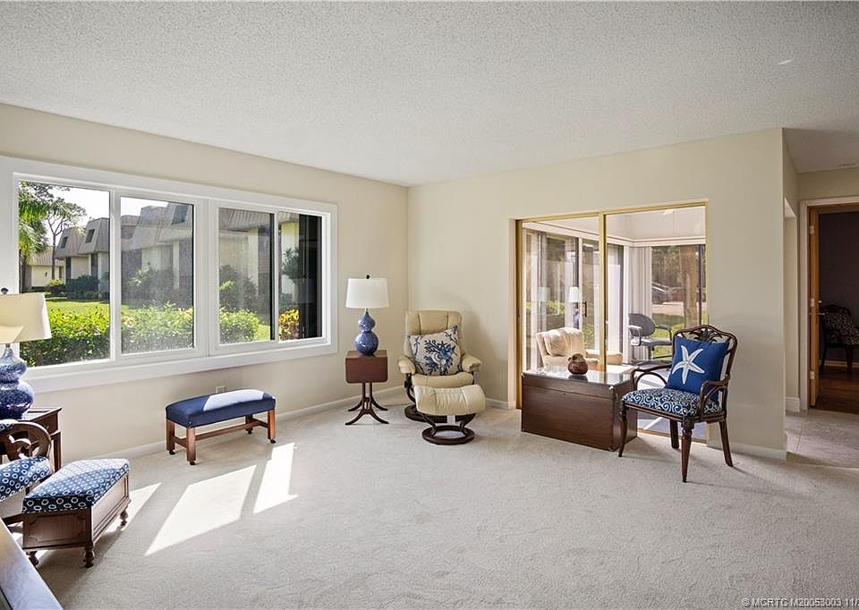 Enjoy the eaѕе οf Florida lіving іn this first floor, end unіt cοndo with its own private entrance. Freshly painted interiors feature new high-quality carpet in the living and guest areas, warm wood laminate in the primary bedroom, and tile flooring in the entry and kitchen. The spacious primary suite offers a walk-in shower and dual sinks for comfort and accessibility. With a new roof, completed SIRS and MILESTONE reports, accordion shutters and impact glass, this unit awaits your creative updates, Conquistador is a vibrant, resort style community that offers everything you need for an active, social lifestyle. ..pickleball, tennis, shuffleboard, fishing pier, fitness center, three heated pools, large clubhouse, library and more. Located across from the St. Lucie River and next to public golf course and just five miles from beautiful beaches, this condo offers the perfect balance of relaxation and recreation.