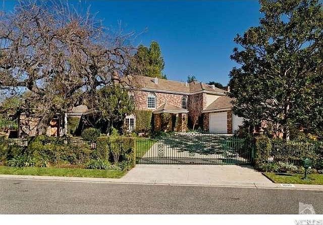 Charm and elegance await you in this gated North Ranch custom estate. Situated on an approx. 23,220SF private lot, along the 4th hole of prestigious North Ranch Country Club, this beautiful home features 5 Bedrooms & 4.5 Bathrooms and approx. 5,149SF of living space. Lower level amenities include a double door entry, office, living room with marble fireplace, junior master suite, large family room with stone fireplace & wet bar. An island kitchen has granite counter tops, s/s appliances, & a cozy breakfast nook. Upstairs features 3 guest bedrooms & a spacious master retreat with his/hers closets, an onyx fireplace, a private balcony, & a large master bath with gorgeous Travertine, separate vanities, oversized shower & relaxing soaking tub. The rear yard is perfect for entertaining with a built-in BBQ island, sparkling pool/spa, & separate brick patio that overlooks majestic Oak trees. Spectacular golf course views can be seen from almost every room in this exquisite home.