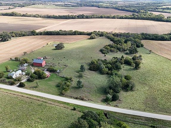 Country home on 27+/- Acres located just South of Horton Kansas on US Hwy 159. This established home offers the new owners the option of remodeling or possible tear down and build a new home. Additional outbuildings compliment the home. A large barn holds potential for entertainment and gathering space or convert back to ag use. Home offers a detached two car garage with power and concrete floors. There are several additional outbuildings perfect for storage or use in livestock production. The land is a combination of pasture with a pond and some timber on the North side of the land offering some recreation. Mature fruit and nut trees including pear, peach, cherry, apple, appricot, chestnut, pecan. Farm has some fencing on it and is cattle tight at the present. There are wells on the property that offer an opportunity to water livestock in pastures. This acreage would offer an amazing setup for a country home and acreage with livestock and/or income opportuities.