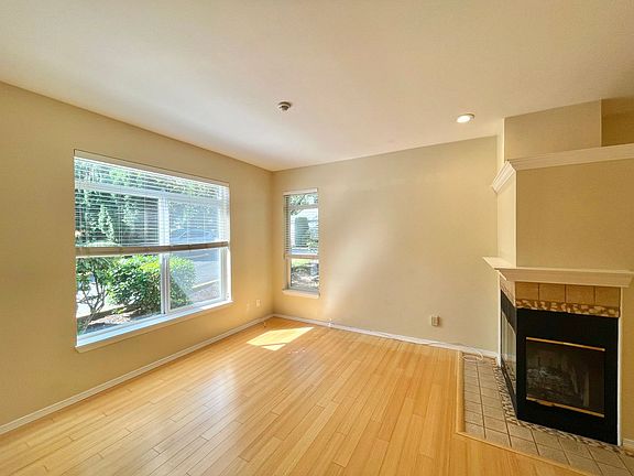 A great 3bedroom and 2.5-bath townhome on an interior street. The quiet unit which in a natural setting on the edge of downtown Redmond. Beautiful wood floor installed throughout kitchen, bathroom and laundry. Bright and spacious Kitchen with Eating Space on Main Level. Dishwasher, Garbage Disposal, Microwave, Oven, and Refrigerator provided. Cozy fireplace in the spacious living room. The master bedroom has a customized walk-in closet for storage. Great location, minutes to 520, Microsoft, and RTC.
