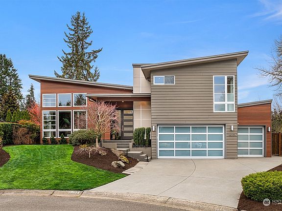 Custom NW Contemporary Stunner in coveted Tam O’ Shanter Golf Community, Bellevue! Ideal cul de sac location adjacent to Club amenities w/golf course views, this 2016 home boasts abundance of natural light w/17 ft ceilings! Gourmet kitchen provides elegant Cambria Quartz counters, modern, functional cabinetry & 10 ft Island w/storage & Thermador appliances incl. gas cktop. Primary retreat on Upper level w/luxurious ensuite & 2 addit. bds + loft that can transform into 4th bdrm. Dine al fresco on private patio w/fully fenced backyard sanctuary + garden. Rare 3-car garage. Elegant hardwoods, tile, heated floors, custom electric blinds & thoughtful storage thru-out! Steps to golf, swim, tennis, pickleball. Min to Bellevue schools/Msft/520&I-90