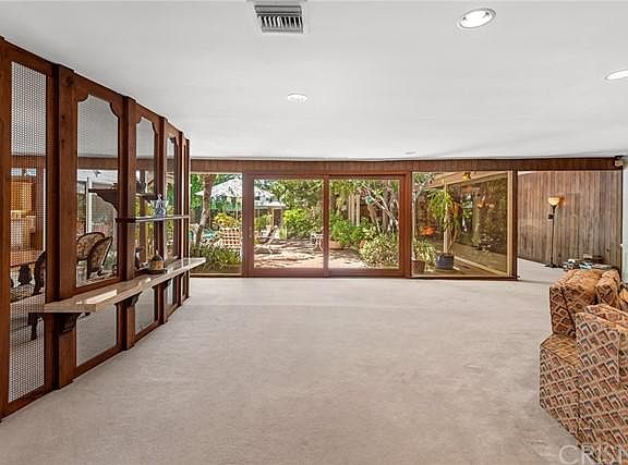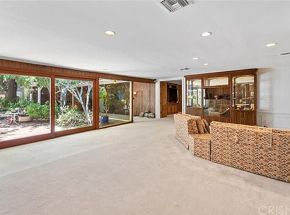 Welcome to this sensational Mid-Century Modern Ranch Estate, ideally situated on a sprawling 16,466 SQFT flat corner lot, South of Ventura Blvd. in one of Encinos most desired neighborhoods. Once occupied by Frank William Bill Gay, a top executive and head of communications for Howard Hughes, and later by well-known singer India Adams (the singing voice of Hollywood legends Joan Crawford and Cyd Charisse, in MGM musicals) and her English interior designer husband Quentin Rance, this enchanting and lavish compound exudes Old Hollywood charm circa 1954, with incredible architectural detailing & nuances throughout the interior and grounds. This entertainers paradise features 4 bedrooms, 5 bathrooms, and 5,603 SQFT of living space with walls of glass looking out to the park-like grounds, cabana, and sparkling pool. The indoor-outdoor flow exudes California living at its finest, and the possibilities are truly endless to fully restore, reconfigure, or completely reimagine! Highlighted by gorgeous wood beamed ceilings, custom detailed moldings, multiple fireplaces, a formal living room, dining room, library/family room with built-ins, an expansive bonus/great room, a chefs kitchen with butlers pantry and breakfast nook. Theres also a detached cabana perfectly situated for potential ADU. Conveniently close to shopping, boutiques, entertainment, restaurants, cafes, freeways, Crespi Carmelite Private High School, and everything the West Valley has to offer. Clearly ahead of its time, this classic retreat is a neighborhood treasure.